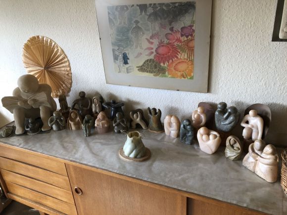 Sammlung der Figuren aus Speckstein. Adelheid Lothholz nennt sie liebevoll "Meine Mitbewohner"
