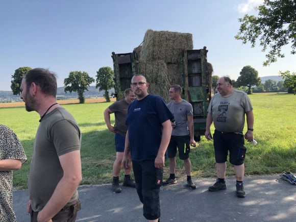 Das HillerWebBlatt sprach mit Britta Gedantis, die vor Ort die Futterspenden schriftlich festhielt und die Beladungen der Lkws koordinierte. Sie führte aus, dass zu Beginn der Katastrophe ihr Mann Marko Gedantis und Manuel Bollmeier überlegt hätten, wie den Landwirten in den betroffenen Gebieten geholfen werden könnte. Viele Menschen hätten Haus und Hof verloren und darüber hinaus seien auch die Futtervorräte weggespült und Felder und Wiesen verwüstet worden.