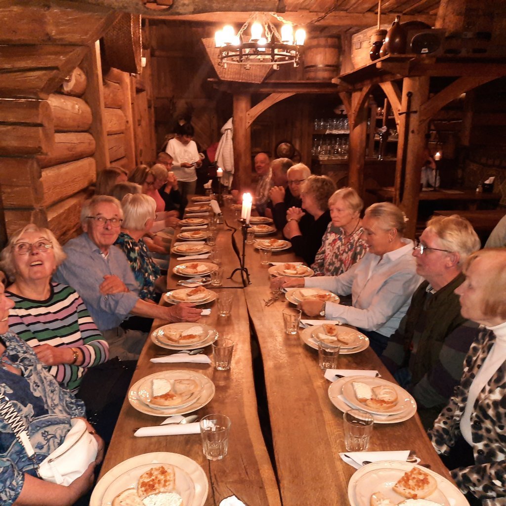 Nach diesem anstrengenden aber schönen Besuch wurde eine Auszeit genommen um sich für das Abendessen im Restaurant „Ogniem i Mieczem“ (Mit Feuer und Schwert)“ zu stärken. Ein rustikales Restaurant, in dem schon viele Persönlichkeiten zu Gast waren. Auch dieser Tagesordnungspunkt der Reise wird sicherlich den meisten Teilnehmern in sehr angenehmer Erinnerung bleiben.