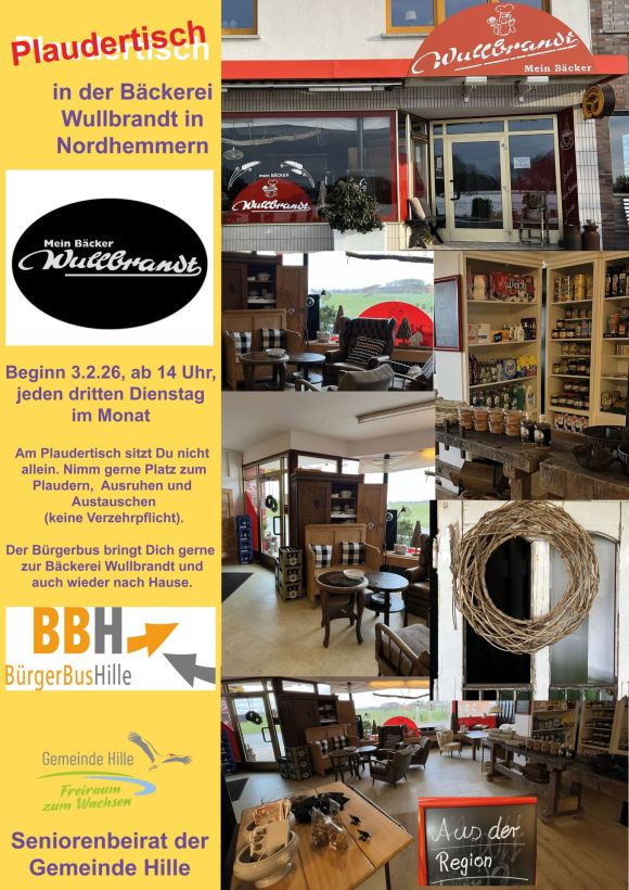 Hille-Nordhemmern. Der Seniorenbeirat der Gemeinde Hille hat sich gerade erst konstituiert und schon stellt er ein neues Projekt auf die Beine. Er richtet in der Bäckerei Wulbrandt in Hille-Nordhemmern, Detzkämper Straße 90, einen Plaudertisch ein.