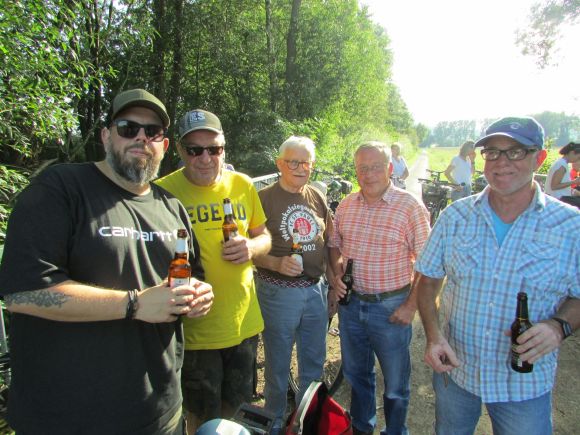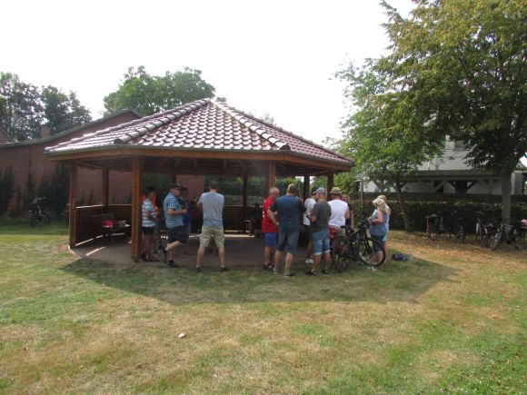 Auf den Weg dorthin wurde auf dem Meßlinger Dorfplatz ein Zwischenstop gemacht, hier wurden wir von Ursula Duda und Frieda Schäffer mit Kaffee und Kuchen bewirtet. Da es ziemlich warm war an diesem Tag, haben wir auch Zwischenstopps auf den Parkplätzen der Firma Jenz in Wegholm und Firma Frost in Friedewalde gemacht.