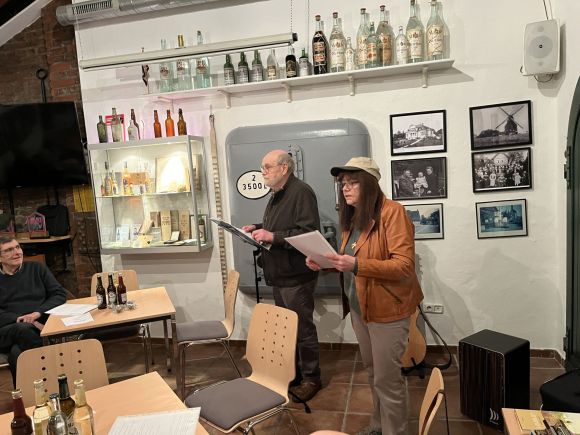 Zum Schluss wurde den Gästen noch etwas besonderes geboten. Sarah Lau und Rainer Eschedor trugen Texte aus der Kunstszene Poetry Slam vor. Beim Vortrag von Sarah Lau ging es inhaltlich um die Brennerei und alkoholische Getränke und beim Text von Rainer Eschedor standen weltbekannte Namen von Spirituosen im Mittelpunkt. Nach einem Imbiss wurde zu öffentlichen Führungen durch das Museum eingeladen.
