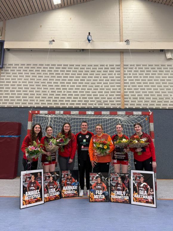Leider mussten wir auch im letzten Heimspiel gegen den Buxtehuder SV in eine Niederlage einwilligen. Nach dem letzten Sieg in Frankfurt und dem Unentschieden zuhause gegen Altenholz holten wir aus den letzten acht Spielen leider keine Punkte mehr. Der Abstieg aus der 3. Liga war nach vier Jahren nicht mehr abzuwenden. Besonders hervor zu heben ist, dass sich Lexa Höinghaus mit 170 Treffern die Torjägerkanone der 3.Liga Nord holte. Verabschiedet wurden Emily Buhrmester, Beatrice Hartmann, Anabel Heitefuß, Lisa Netzeband, Hannah Schäkel und Florence Meyer. Vor allem der Abschied von unserer Flo war doch sehr emotional. Leider mussten wir uns auch von unserem Trainer Jonas Lukowski verabschieden. Jonas sprang als 2022 als Interimscoach in die Bresche und wurde dann zur Dauerlösung. Zweimal schaffte er den Klassenerhalt mit Mädeln. In der Regionalliga werden die Mädel jetzt neu angreifen.